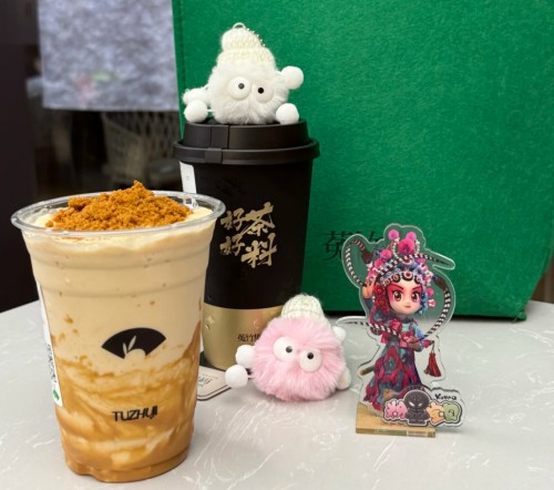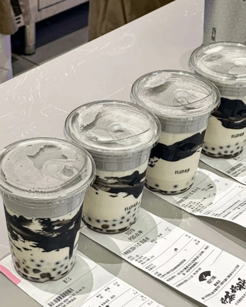 招牌「黑芝麻牛乳茶」料超足,里面有黑芝麻爆爆珠、黄精珍珠等丰富小料,咬开爆爆珠的瞬间,浓郁的芝麻香瞬间在口腔散开,牛乳的醇厚与芝麻的香气完美交融,每一口都是满满的幸福感。