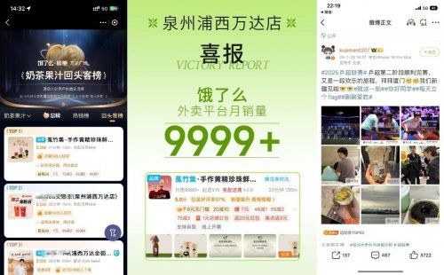 也正是得益于丰富多元的产品体系,菟竹集一经上线便迅速登上门店区域附近排名榜单:饿了么奶茶果汁回头客榜top1,大众点评好评榜第一!并在微博、小红书、抖音等多个社交平台引发热议,收获好评如潮的同时,悄然掀起了一场健康茶饮的新革命。