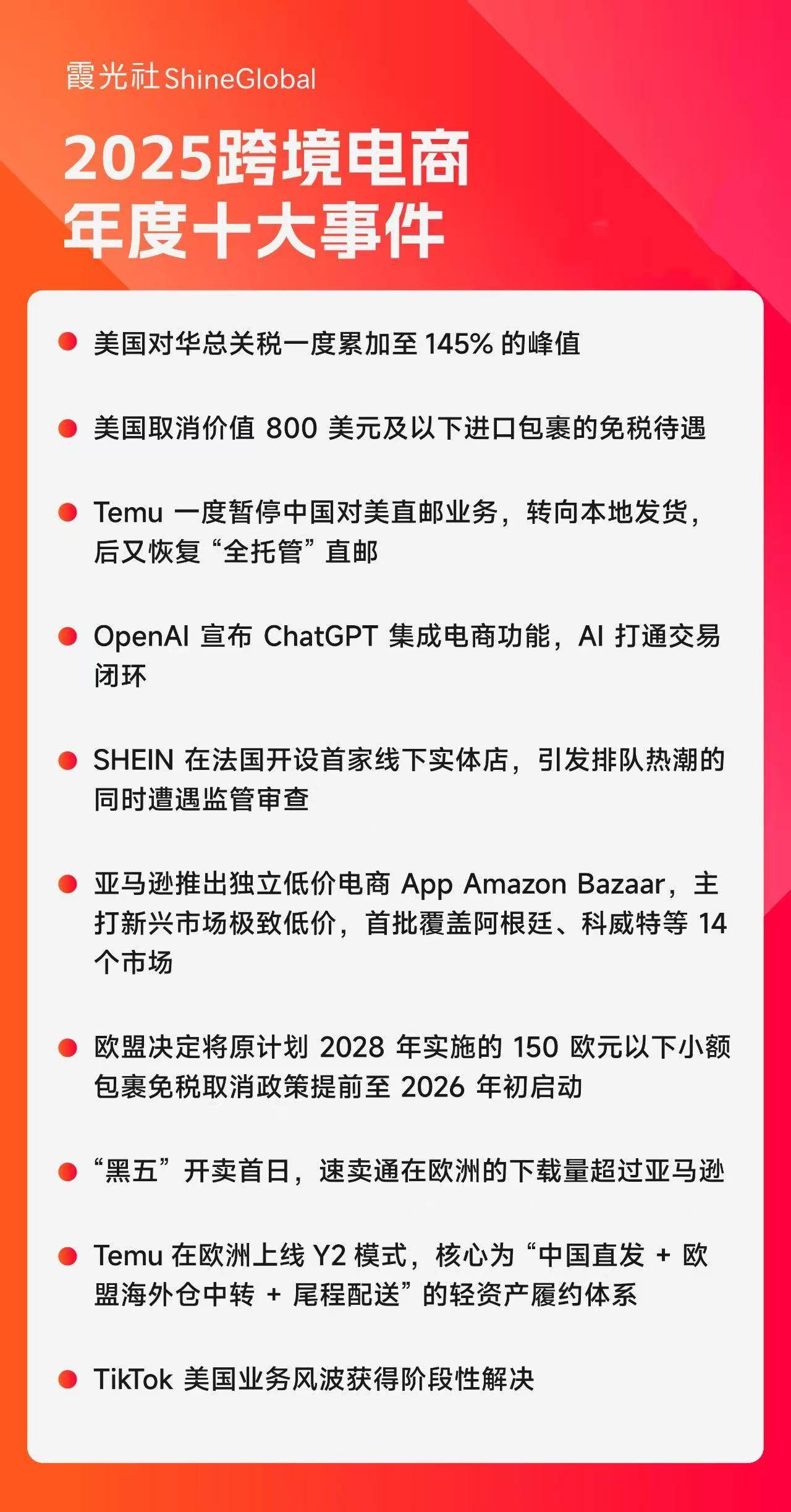 从2025年各家平台的动作可以看到,跨境电商已不再是简单的上线一个国家站点,而是进入了本地供给、履约、支付与合规深度绑定的阶段。在全球免税时代逐步结束的背景下,谁能更快完成本地化、谁能更稳住多区域供给,正在成为平台竞争的新分水岭。