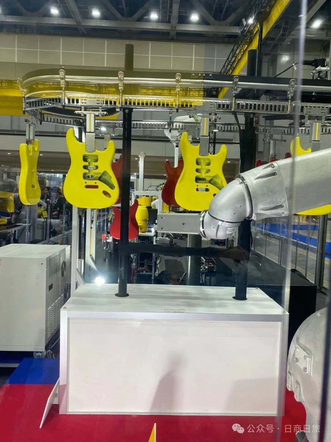 FANUC坐全球第一把交椅,在世界工业机器人出货量长期位列第一梯队,且存量装机量常年第一。此次活动它的整活是用机械臂为吉他进行涂装(下图),这属于传统艺能,FANUC最早就是汽车涂装机器人起家。
