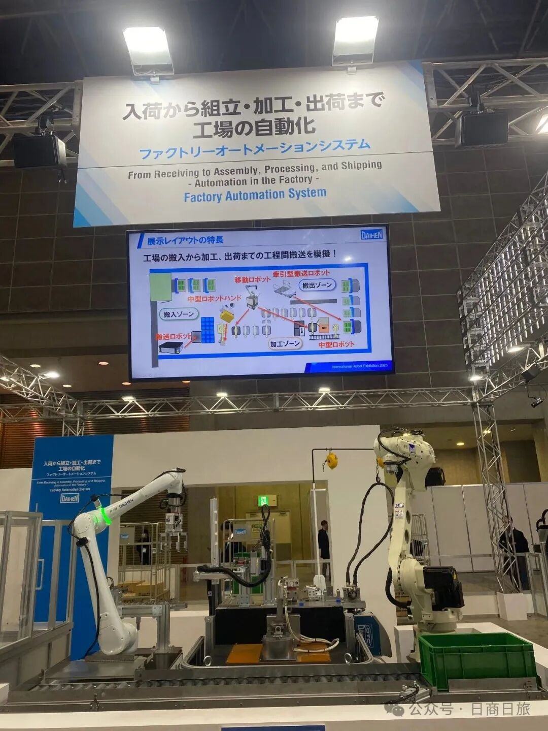 起码日本本地会尽可能贯彻无人化。下图为变压器制造起家的Daihen在展会上所宣传的“从收到零部件到加工到出货并运出而实现的整体自动化”,全员都是机器人,由机器人负责一切。不过这种宣传区域有些门可罗雀,略显平淡,炒不出太大新闻。