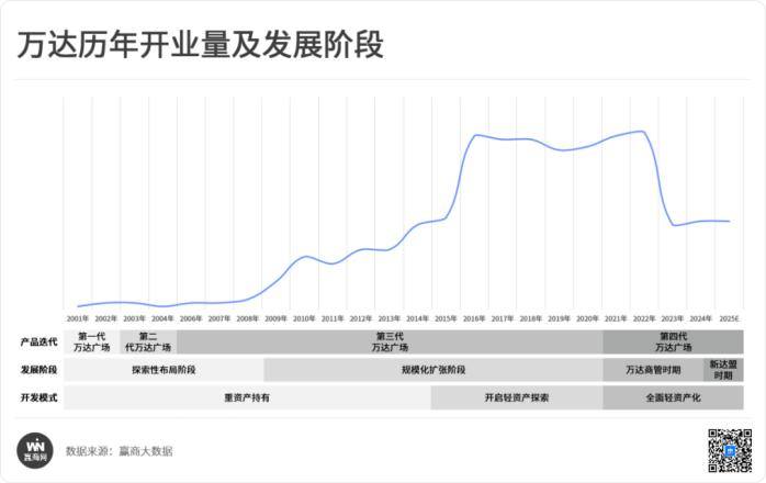 据赢商大数据统计,2025年新开业20家万达广场。以“轻资产”与“存量改造”为核心引擎,深度下沉低线市场,商业三、四、五线城市项目占比超70%;通过融合文旅、在地文化等创新模式提升项目价值。