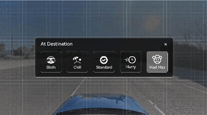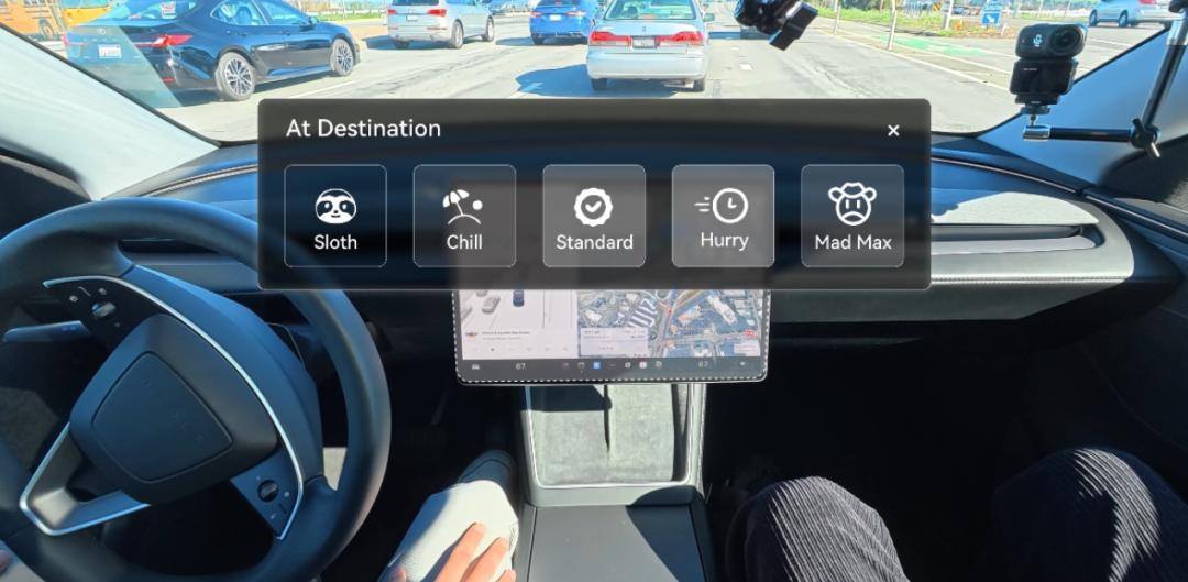 其他车的智驾一般最多是3种超车策略可选,而FSD V14多到有5种,从最慢的Sloth,图标是这个树懒,到最激进的Mad Max。
