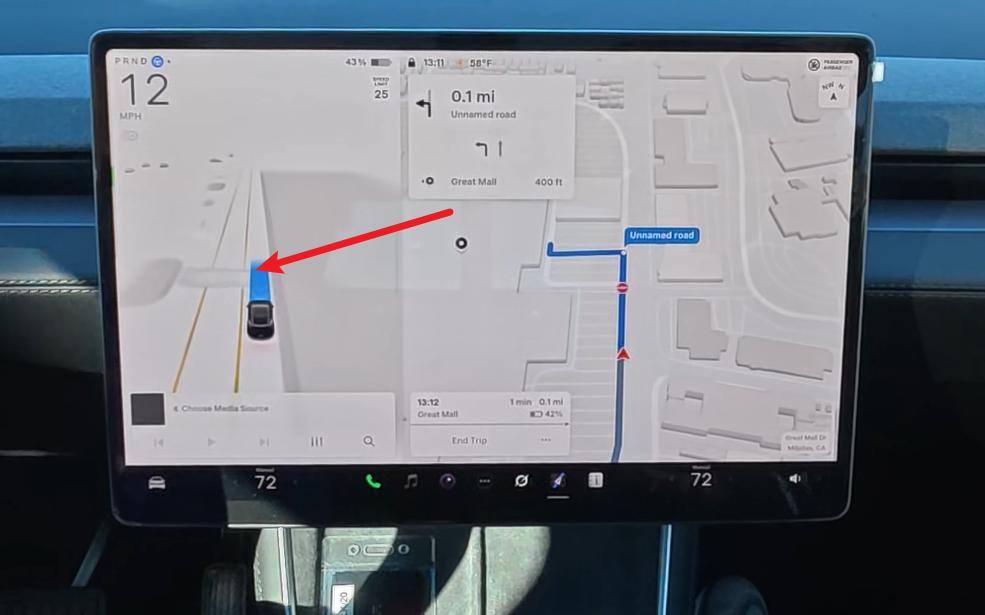 只不过太有想法可能也不都是好事,我发现FSD经常不跟导航走,有一次我们大路走着好好的,它自己冲进小路想抄近道,然后绕一圈发现不行,又开回大道了。