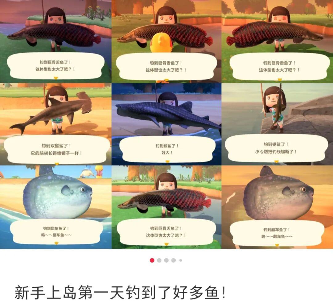 即便是没玩过《动森》的人,看到玩家分享的超大翻车鱼,也能感受到钓鱼佬上货的喜悦;小动物们或是童趣可爱或是充满哲理的对话,也不需要什么阅读门槛;而90买入500卖出的大头菜交易含金量,想必会点算数的人都能懂。