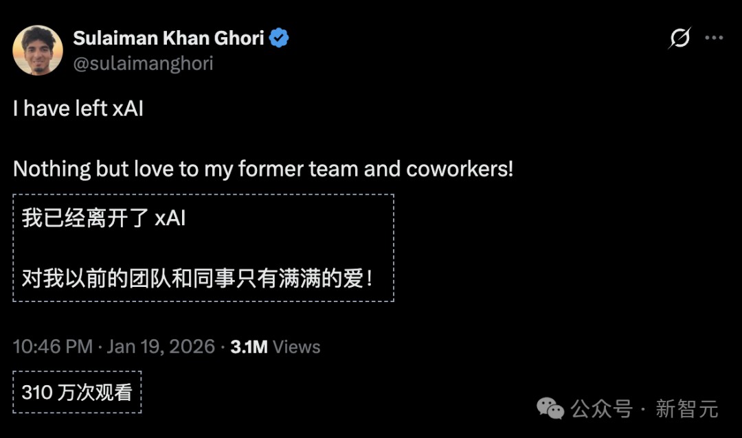 随后,Sulaiman Khan Ghori确认他已离开xAI。