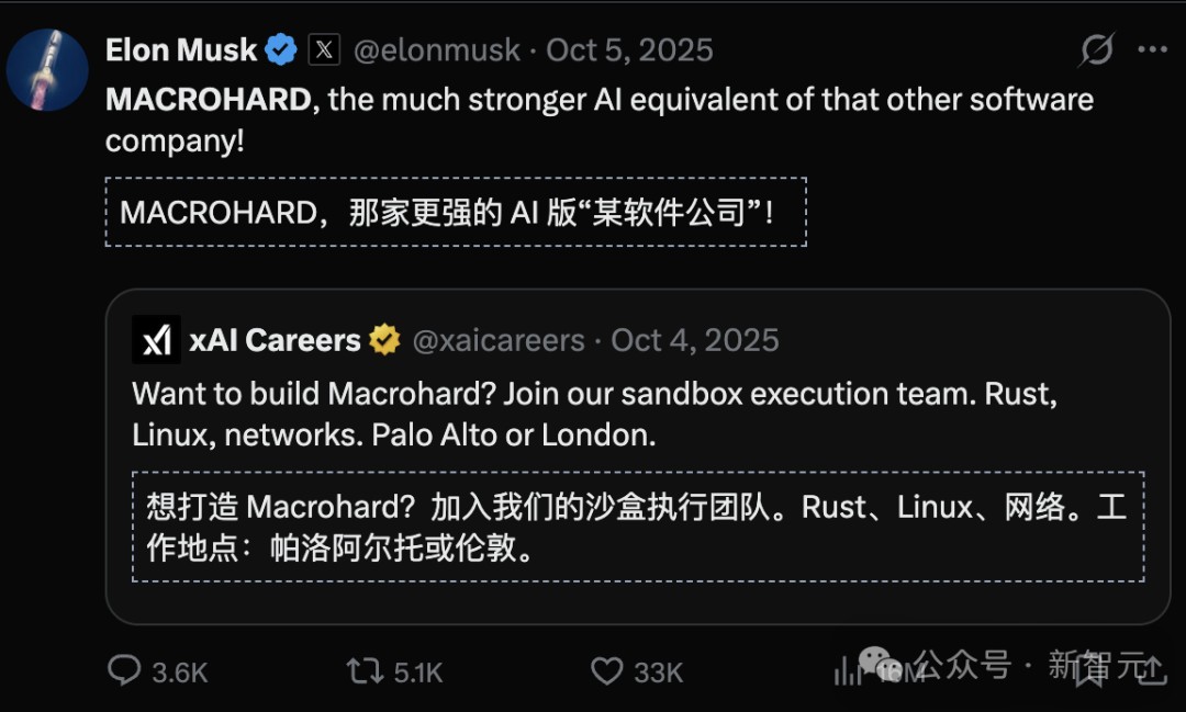 马斯克本人关于xAI的发言(其中还提到Macrohard正在研发「人类模拟器」,相关推文已有超1100万次浏览)、以及xAI的招聘信息。
