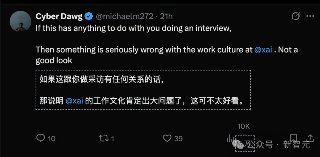如果因为播客,他被开除,这说明xAI的文化肯定有问题,xAI这种处理不太好看。