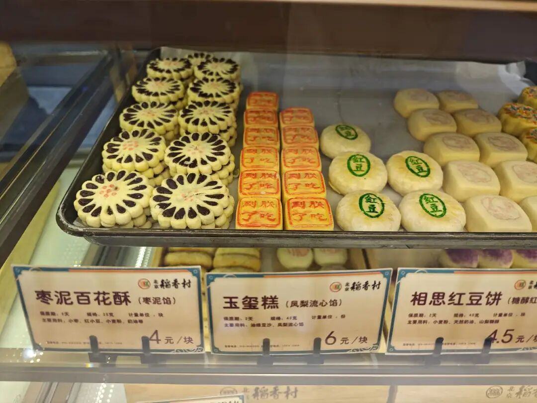 在每一个柜台前,都有操着正宗北京腔的叔叔阿姨正轻车熟路地选购,一看就是附近常客。我们还在糕点区犹犹豫豫,不知该装哪几款、要挑多大的礼盒时,旁边的叔叔阿姨们早已迅速称完常吃的口味,拎着塑料包装离开了。