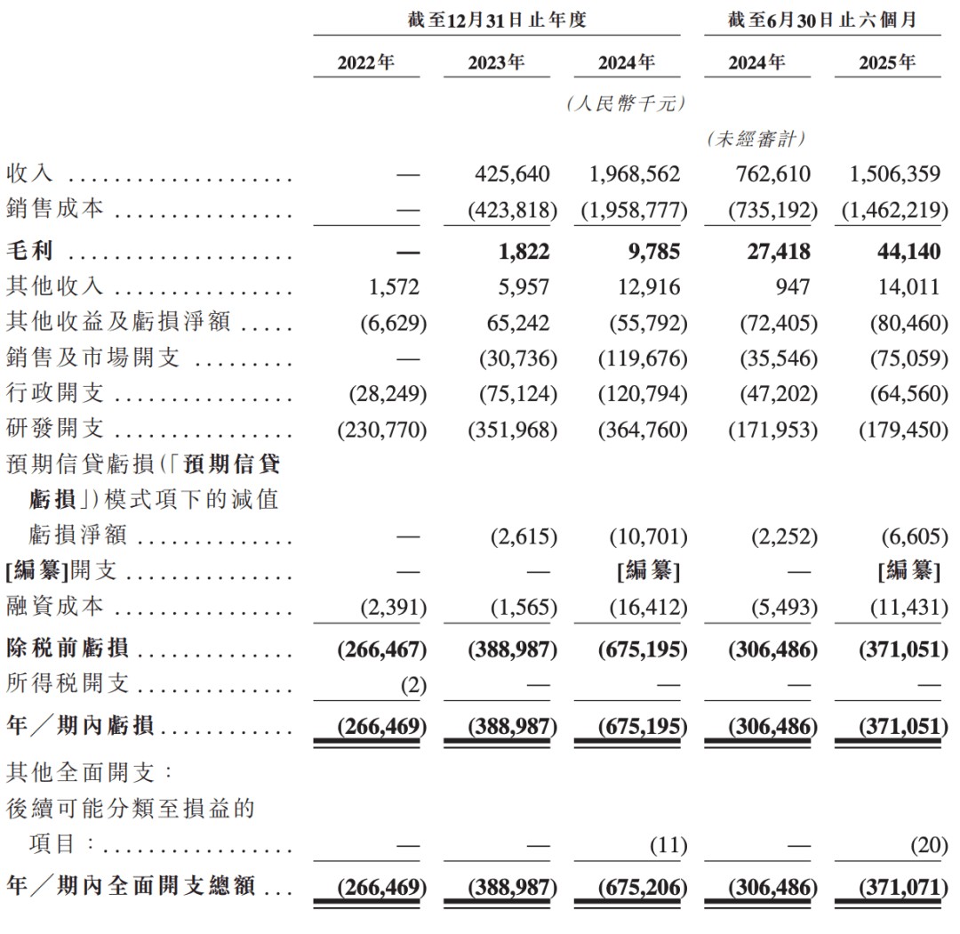 2022年、2023年、2024年期内亏损分别为2.66亿元、3.89亿元、6.75亿元;去年上半年的亏损为3.71亿元。