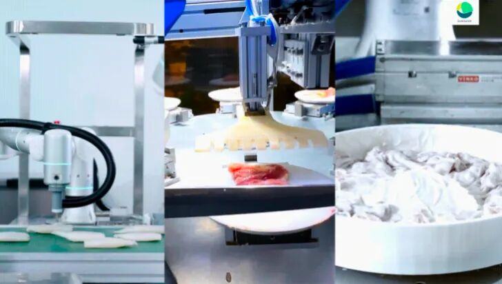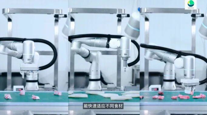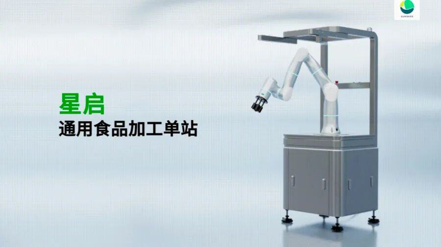 希夕智能目前发布的主要产品“星启”通用食品加工单站,通过AI加柔性机械臂实现加工环节的智能化柔性化生产,目前重点聚焦于配餐、配重、精准切割和随线加工四个商业场景,并已完成商业化落地。