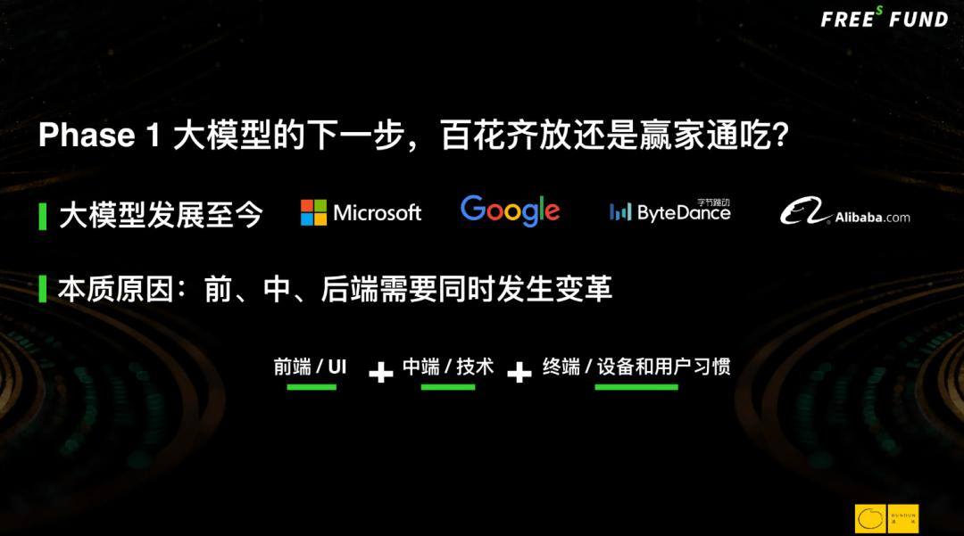 因为一切变革都是从技术创新开始,所以大家会先投技术。但技术的发展不会一直超预期,当技术上了一个小台阶、跳跃了一下之后,就变成了相对线性的发展。一旦进入线性发展,大家就开始考虑,既然有了技术突破,最有可能把技术用起来的是什么?是应用。