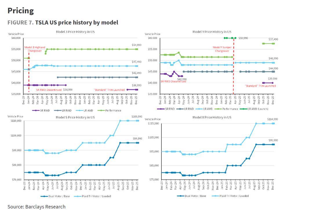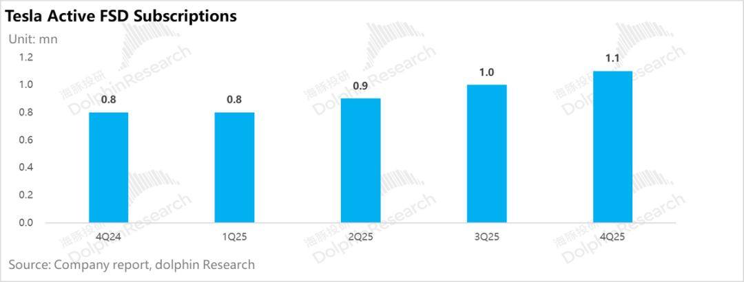 但由于Q4同样也有高价版推出(Model 3/Y的高性能全驱版),以及还有FSD订阅量上升对卖车收入端的贡献(FSD订阅量新增10万辆至110万辆),单价下滑幅度低于市场预期。
