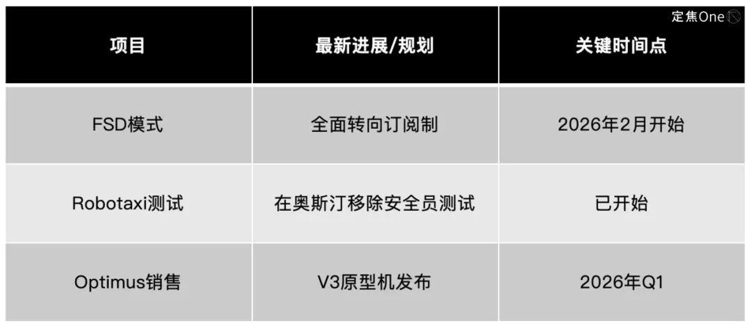 在近几次的财报电话会议上,马斯克本人已经对汽车业务意兴阑珊,他更愿意讲AI故事。市场的焦点也随之转移到FSD(完全自动驾驶)的订阅数、Robotaxi(自动驾驶出租车)的落地时间表和Optimus(人形机器人)的进展上。