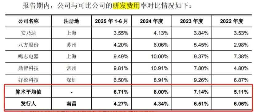 同期,同行可比公司的研发费用率均值分别为5.11%、7.14%、8.00%和6.71%。除了2022年,三瑞智能的研发费用率一直低于同行可比公司平均值。
