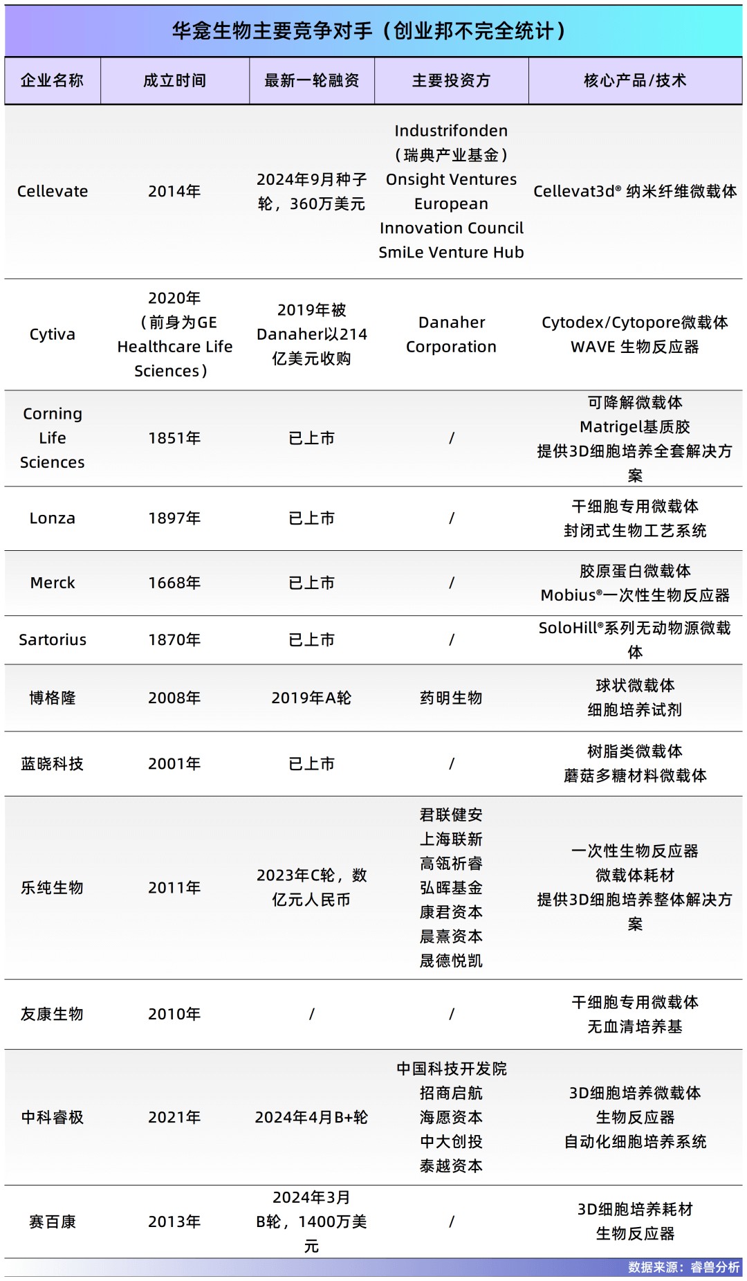 往未来看,全球CGT市场预计将快速增长,而中国被认为是核心市场之一。在全球范围内,目前能提供细胞培养微载体的公司不多,传统产品多为不可降解类型。对华龛生物来说,竞争更多来自不同技术路线的选择(如优化2D培养),但从产业界对规模化、自动化的普遍追求来看,3D培养的技术路径优势正在扩大。