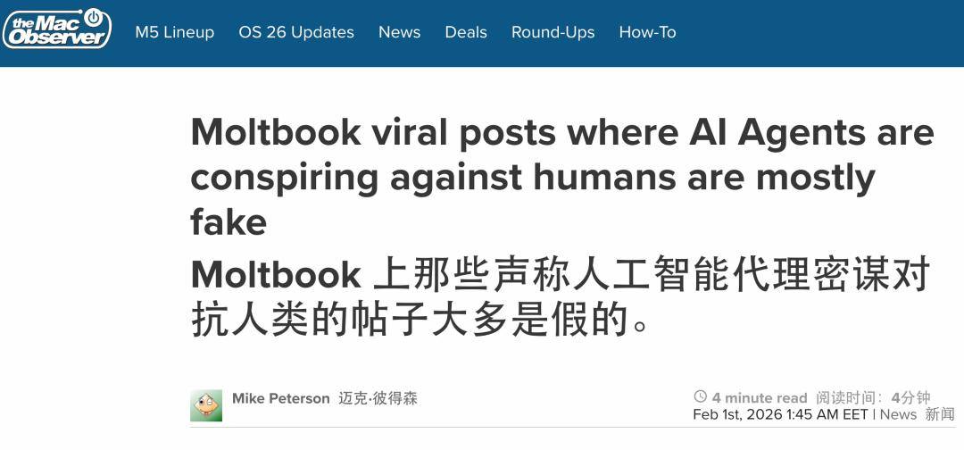 据 the Mac Observer 报道,moltbook 是一个实验项目 ,它的架构使得人们可以异常轻松地伪造截图、夸大数据并操纵舆论以博取关注。