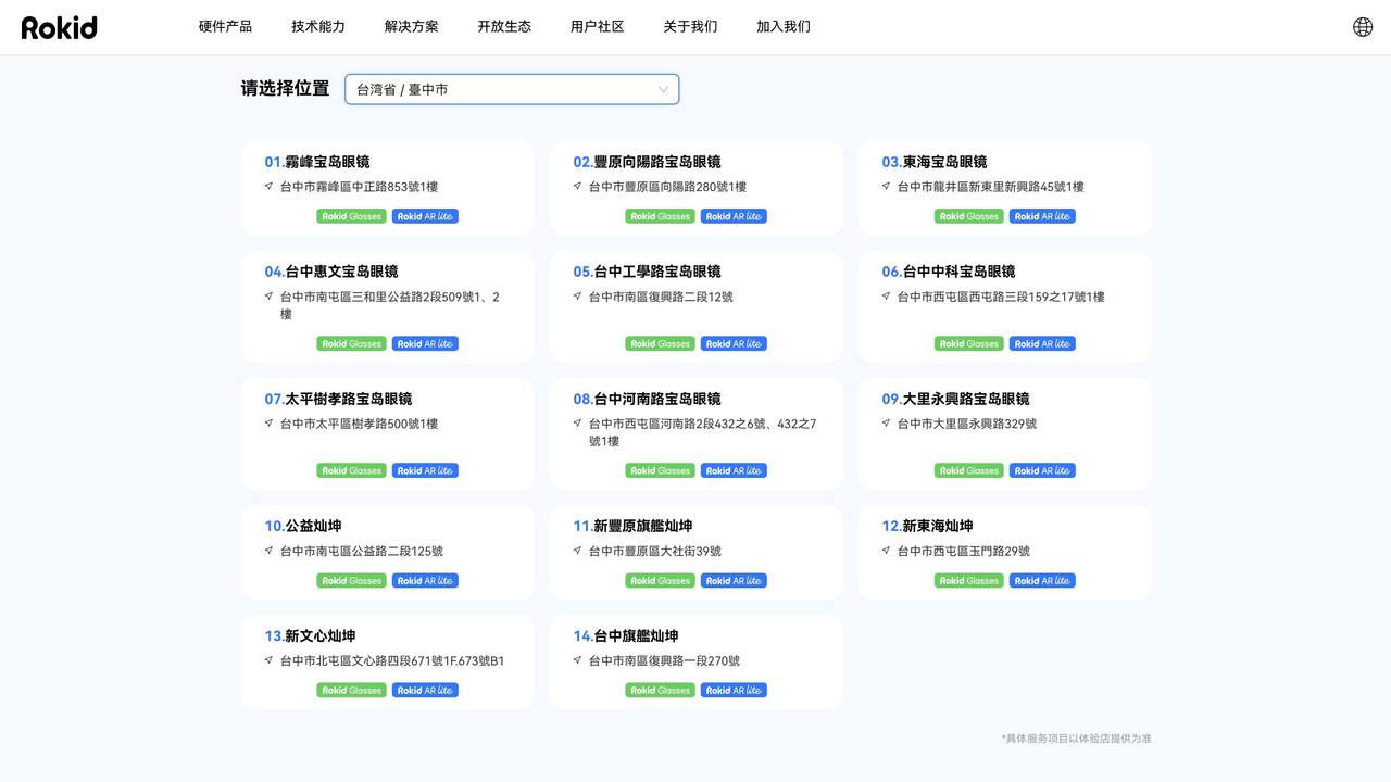 官网数据显示,从拉萨沐森眼镜门店,到澳门电讯门店;从鹤岗明达眼镜门店,到高雄小港宝岛眼镜门店——乐奇 Rokid 线下体验店均已进驻。尤其是在香港特区和台湾省,借助第三方线下渠道商网络,乐奇 Rokid 目前在当地已建立起极高密度的线下体验店体系。