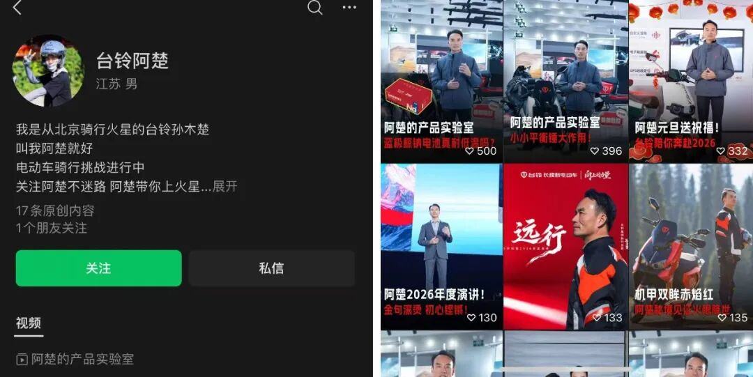 2023年底,孙木楚开设“台铃阿楚”社交账号,打造个人IP,为产品站台。他亲自带队,骑行超1万公里,测试产品性能。