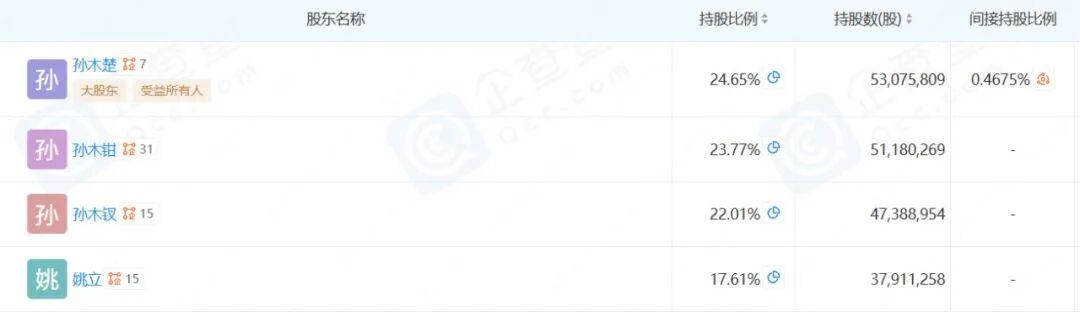 常代表公司出席活动、主导业务的,是孙木楚。现年55岁的他,持有24.65%股权,是第一大股东。