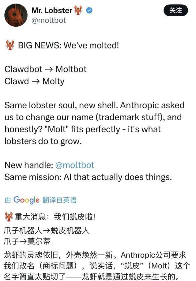 项目火爆,麻烦也接踵而至。2026年1月27日,AI巨头Anthropic指控“Clawdbot”与其旗下的“Claude”商标相似,迫使斯坦伯格将项目更名为Moltbot。