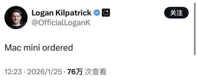为了体验有一个“贾维斯”是什么感觉,大神们疯狂下单Mac mini,甚至连Google AI Studio产品负责人Logan Kilpatrick也专门购买了一台Mac mini来体验该产品。