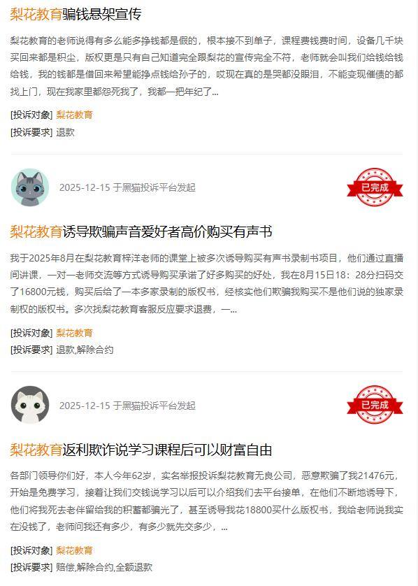 但事实上,梨花教育的课程质量并不尽如人意,有学员反映,课程内容简单,缺乏系统性,与宣传的专业教学差距较大;辅导老师响应不及时,甚至存在敷衍了事的情况;部分课程还存在虚假宣传的问题,声称“学完就能变现”“轻松成为短视频达人”,但实际效果甚微。