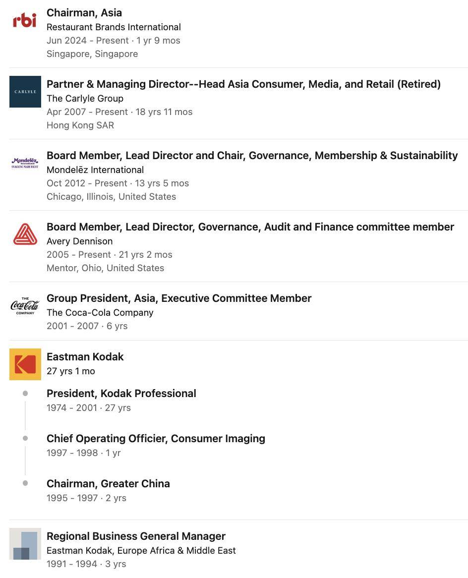 除了麦当劳,Patrick Siewert与中国乃至亚洲市场还有更多交集。根据Patrick Siewert的领英页面,他在亚洲市场的任职经历,最早可以追溯到上世纪90年代,尤其在消费领域经验丰富。