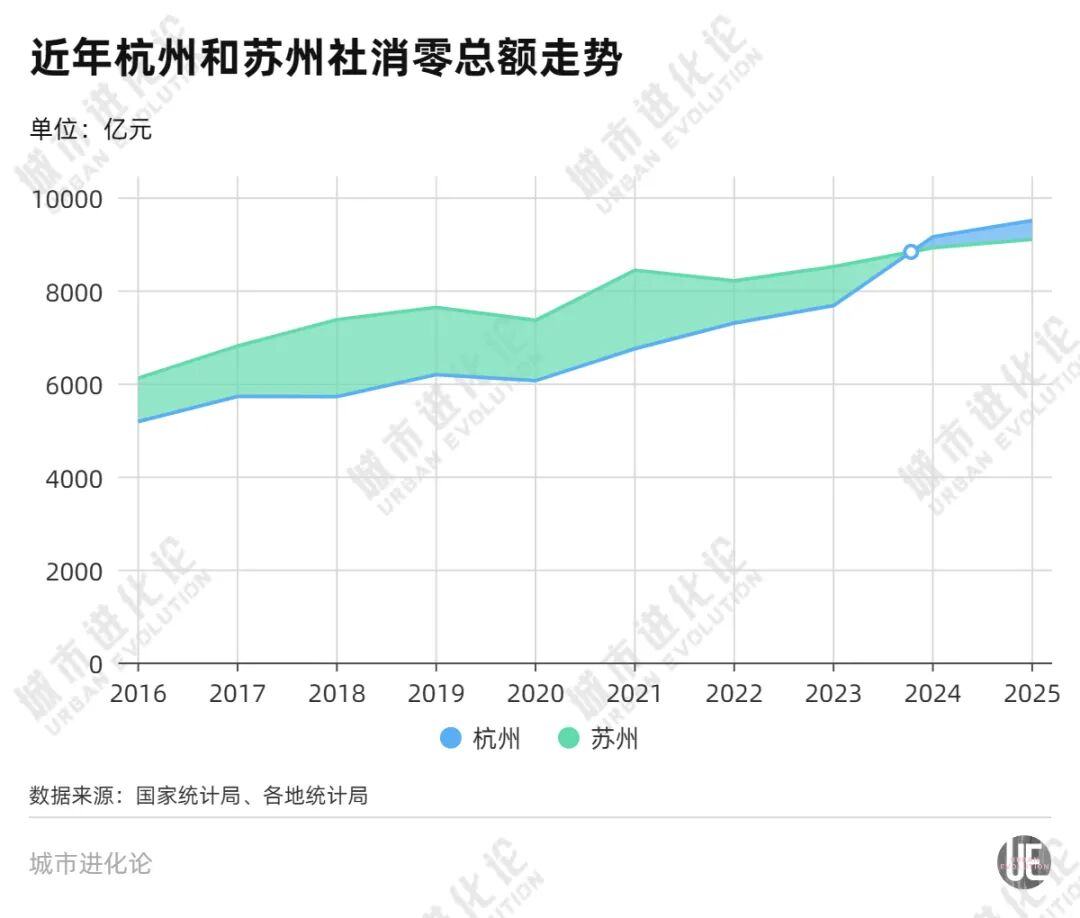 贴身竞逐中,杭州与苏州,谁能率先成为下一个万亿消费之城,仍然值得期待。