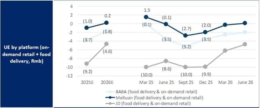 中金: 9 月测算淘宝闪购 UE 亏损约为 4.7 元,未给予美团 UE 测算。