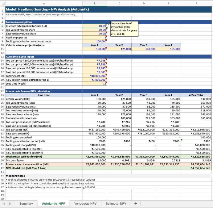 净现值分析电子表格: