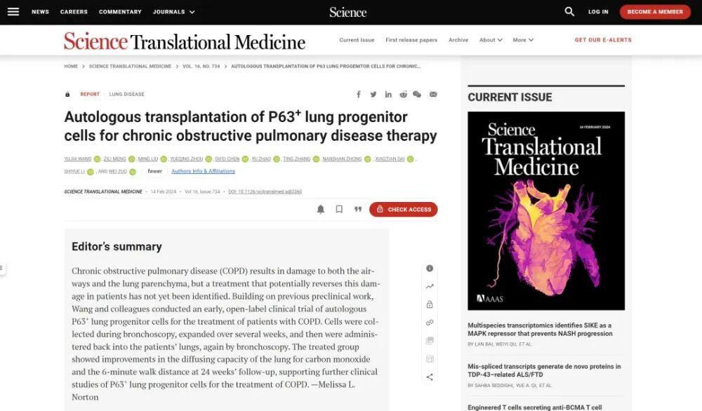 此外,团队还汇聚了来自斯坦福大学、梅奥医学院、南洋理工大学等高水平科研机构的20余名资深研发人员,其中博士及以上学历占比超60%。团队取得的一系列研究成果曾入选“中国医药生物技术十大进展”, 被欧洲呼吸学会(ERS)评为“全球年度三大研究进展”,并于2024年登上了Science(《科学》)期刊官网首页。团队与广州医科大学附属第一医院、上海交大瑞金医院、解放军总医院、同济大学附属同济医院等顶尖临床机构开展了深度的研发合作。