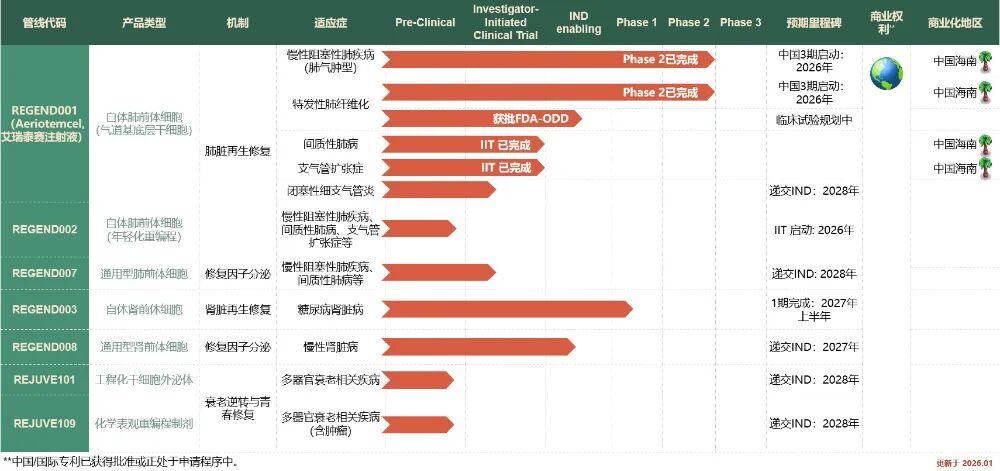 肺再生管线:REGEND001引领全球临床进展