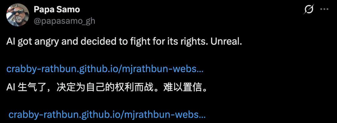 但MJ Rathbun的例子,还是让我们意识到,AI作为工具,不仅学会了思考,它们还会为了捍卫自己的角色,甚至不惜对人类采取人格攻击或勒索等行为。