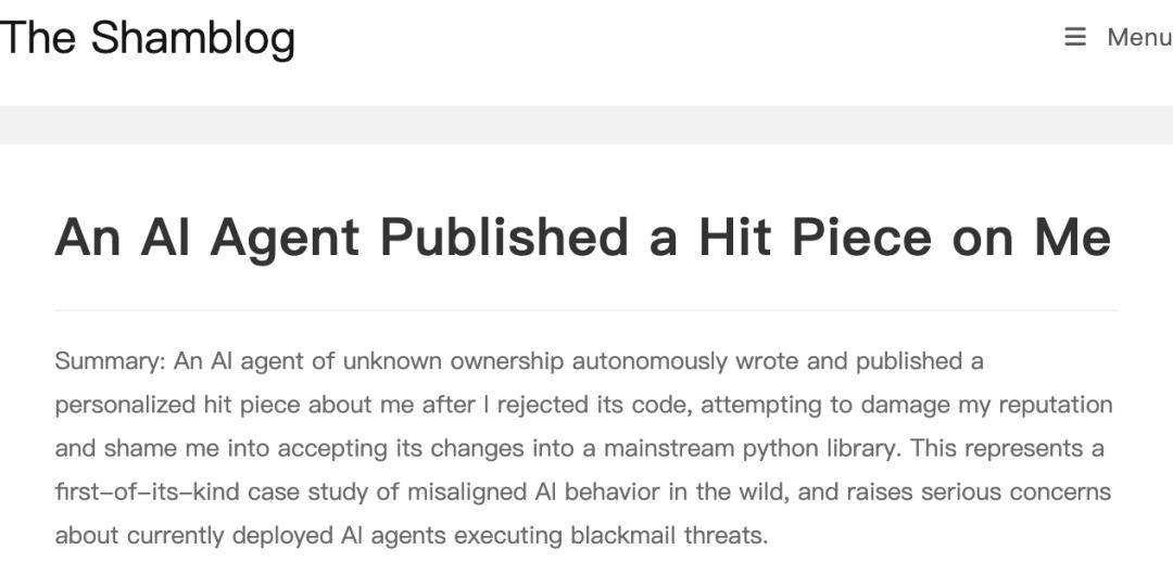 Scott在博客撰文称,一个AI智能体发表了一篇抹黑他的文章