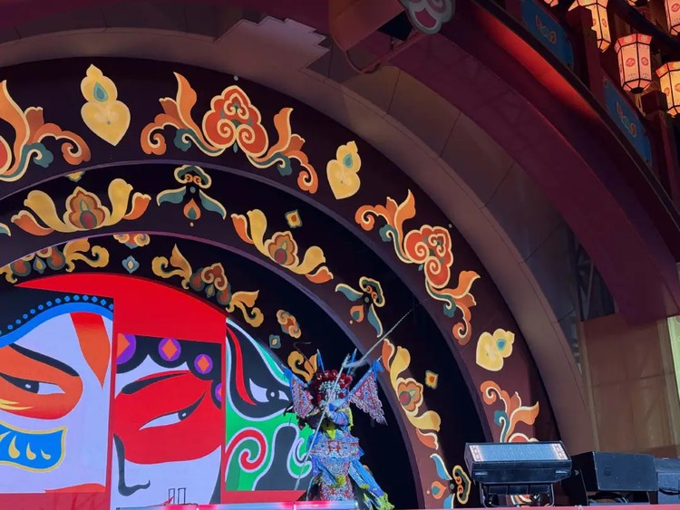 非遗的风也吹进了洋乐园。北环在2024年春节期间就上线了加入非遗元素的新春特别演出,今年推出的是《团圆啦!》。看着阿宝和小黄人唱着跳着,突然有人变脸和表演刀马旦,网友吐槽,“像把唐人街搬进了北京通州”。