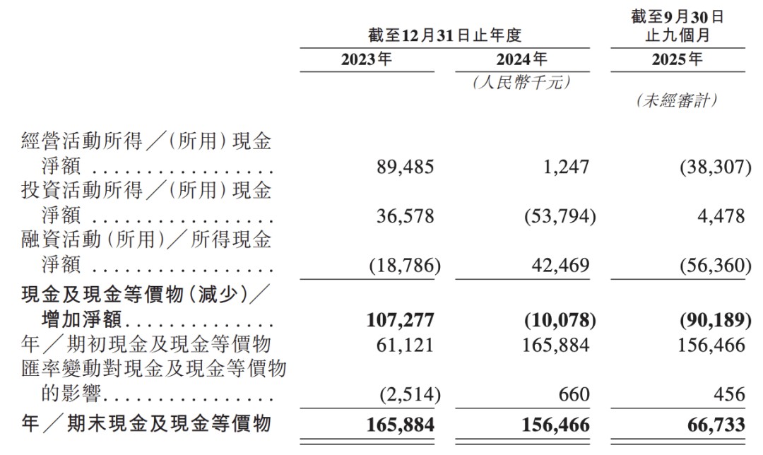 在现金储备方面,鹿客科技的消耗速度也比较快,2023年末的现金及现金等价物为1.66亿元,到2025年9月末已降至6673.3万元,相当于在1年零9个月内减少近1亿元的现金储备。
