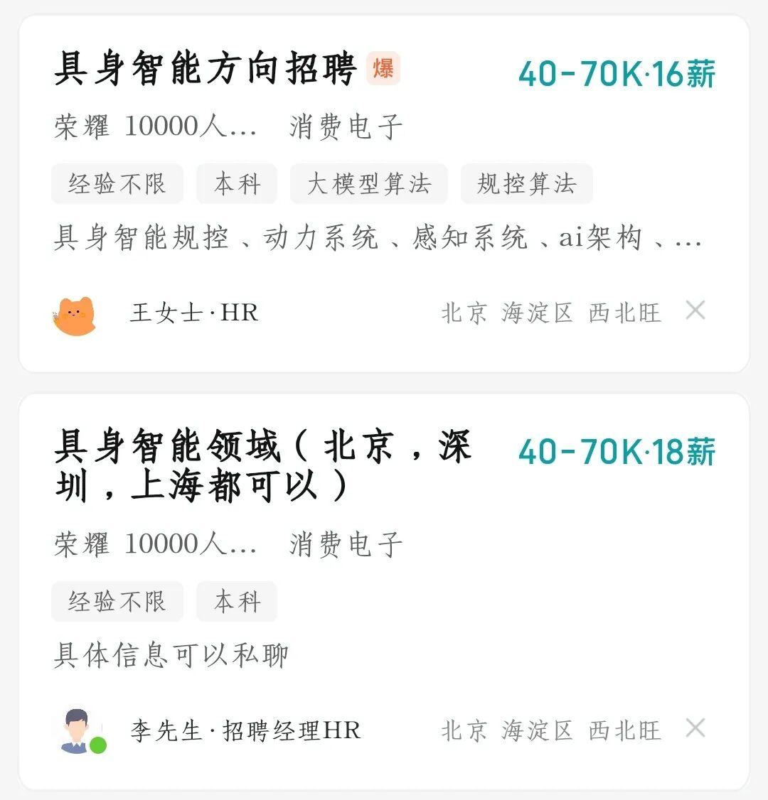 针对机器人领域,荣耀在去年实际就开始布局。最先被外界感知到的是招聘信息: