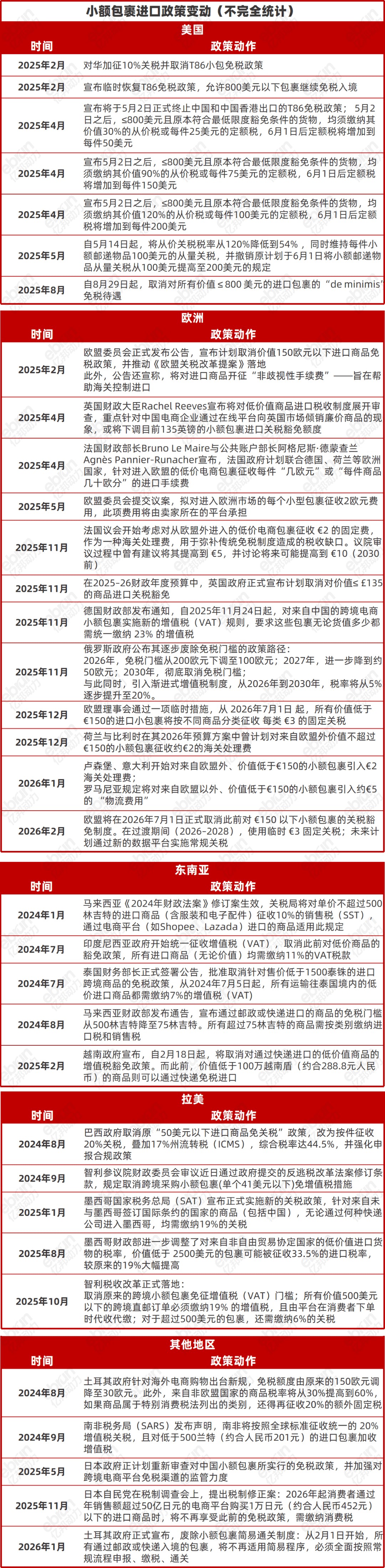 此言非虚。2025年,全球主要市场针对“小包”的闸刀已经陆续落下。