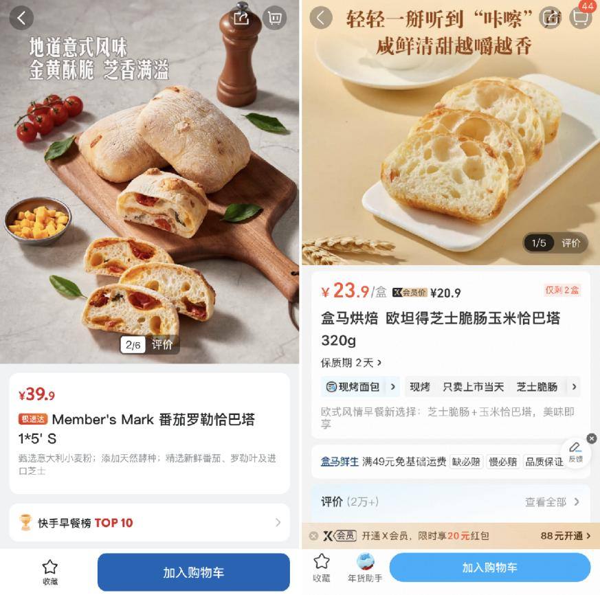 山姆、盒马的恰巴塔商品均在热销
