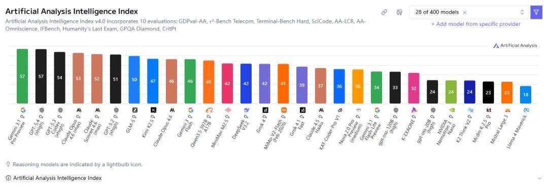 首先是 Artificial Analysis 的评测榜单,如预想一般,智能程度、编码能力、代理能力同时登顶: