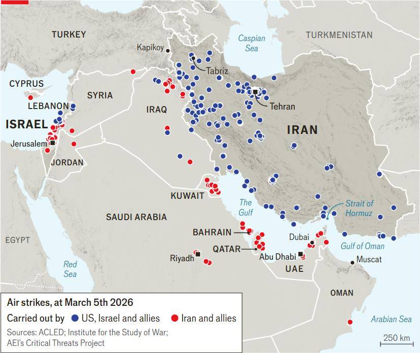 当地时间2月28日,美国与以色列对伊朗发动袭击后仅一小时,伊朗便迅速展开报复性反击,目标不仅包括以色列,还覆盖了沙特、阿联酋、卡塔尔、科威特、巴林、阿曼等所有驻有美军基地的国家。从以色列的特拉维夫、阿联酋的迪拜、卡塔尔的多哈,到巴林的麦纳麦,伊朗的导弹与无人机袭击范围之广、力度之大,在中东地区前所未有。