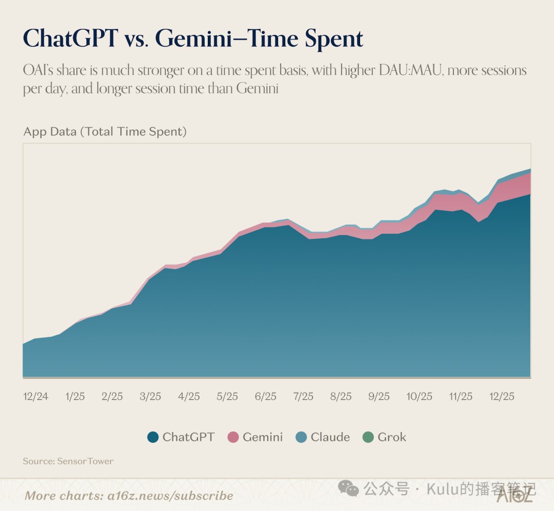 统计范式的改变:由于 a16z 报告主要追踪 Web 访问和移动端下载,目前的数据可能低估了那些纯桌面端 AI 应用(如 Cursor)的真实收入和影响力。
