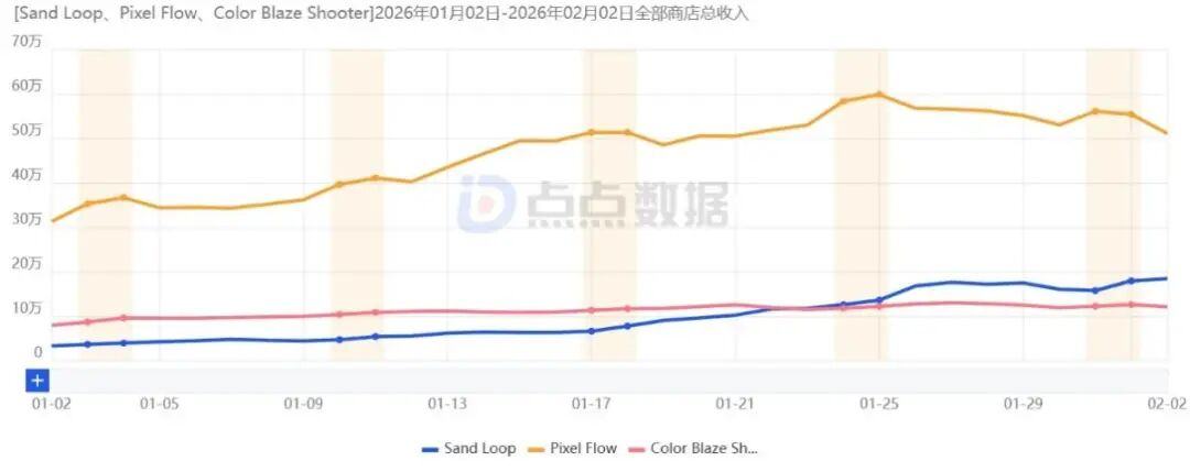 「Pixel Flow」的日流水依然遥遥领先于其它仿品 | 数据来源:点点数据