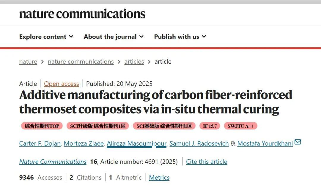 5月,科罗拉多州立大学和亚利桑那州立大学的研究人员成功开发出一种革命性的增材制造方法,可快速制造高性能碳纤维增强热固性复合材料。这项发表在 Nature Communications期刊上的研究,展示了通过原位光热转换实现即时固化,彻底改变了复合材料的生产方式。