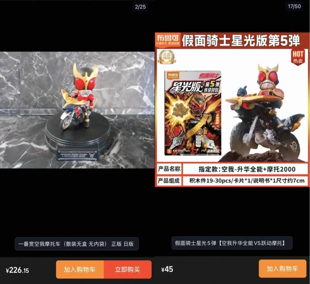 同样的Q版假面骑士角色套装,日本万代玩具的价格是布鲁可的5倍:
