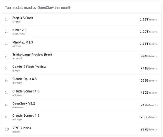 3月2日至8日,阶跃星辰Step模型和稀宇科技MiniMax模型占据榜单前三甲。