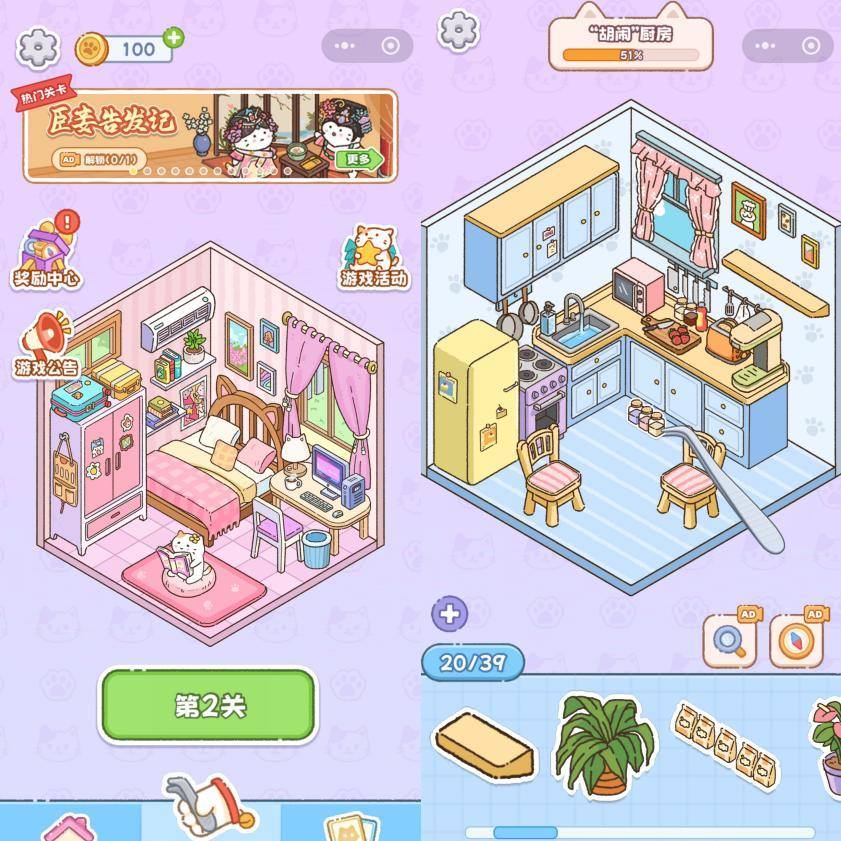 据行业头部商家透露,造景贴纸爆发前夜先火起来的是一款名为《我的小屋》的小游戏,这款游戏成功激起一部分人对于“装修”和“空间布置”的强烈渴望。“除了《我的小屋》,还有《猫咪整理师》,它像极了线上版本的造景贴纸。”97后天津女孩欣玥告诉《天下网商》。然而,游戏满足不了实物拥有的快感,于是,“把游戏里的房间搬进现实”成为了新的消费痛点。