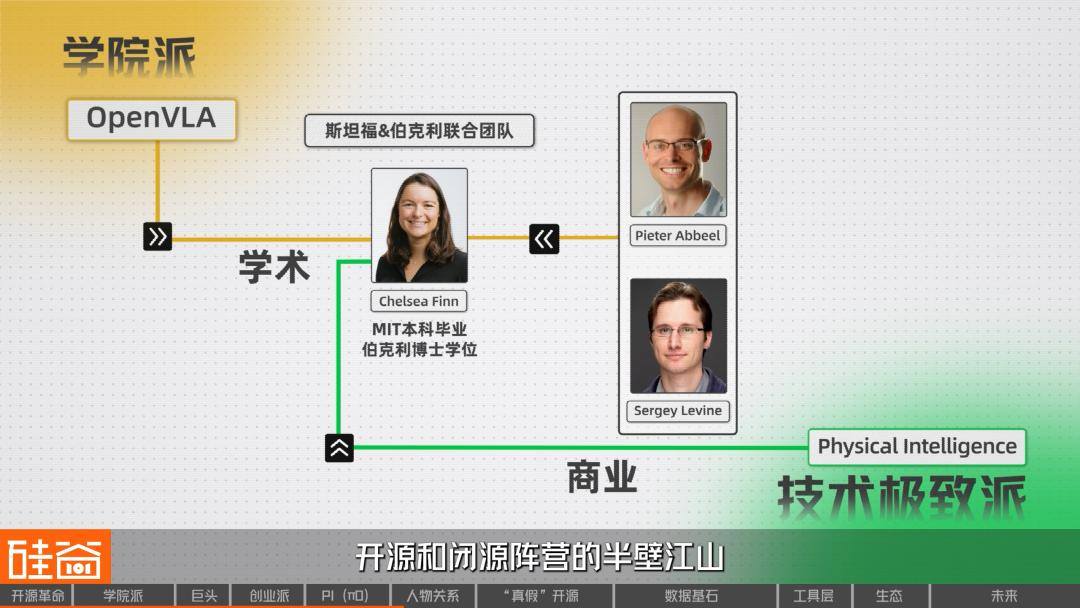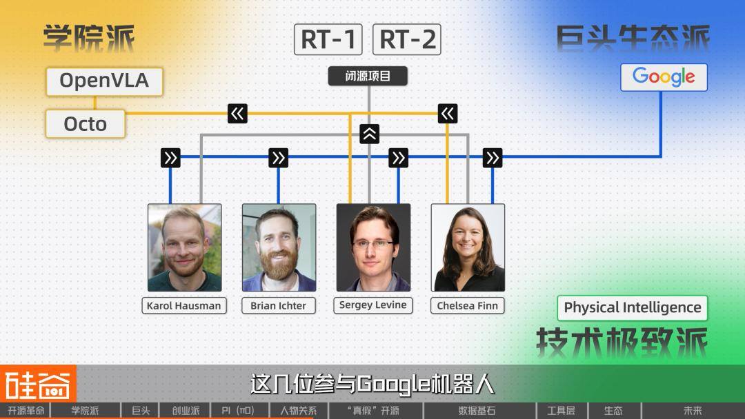 不同阵营背后的主导核心人物也并非对立关系,他们的关系紧密且错综复杂。而更有意思的是,曾经主导闭源模型的多位顶级科学家,后来成为了机器人开源社区的领导者。他们又被称为机器人界的“复仇者联盟”。