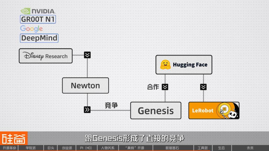 值得注意的是,英伟达也和Google DeepMind、Disney Research联合开发了一个开源物理引擎Newton,跟Genesis形成了直接竞争,所以仿真工具领域本身也是一个充满竞争的领域。